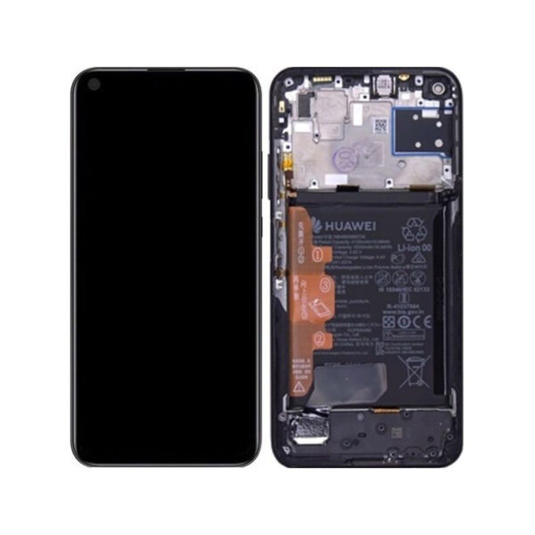 Genuine Huawei P40 Lite Complete lcd and touchpad with frame and fingerprint – Midnight Black – Part no: 02353KFU